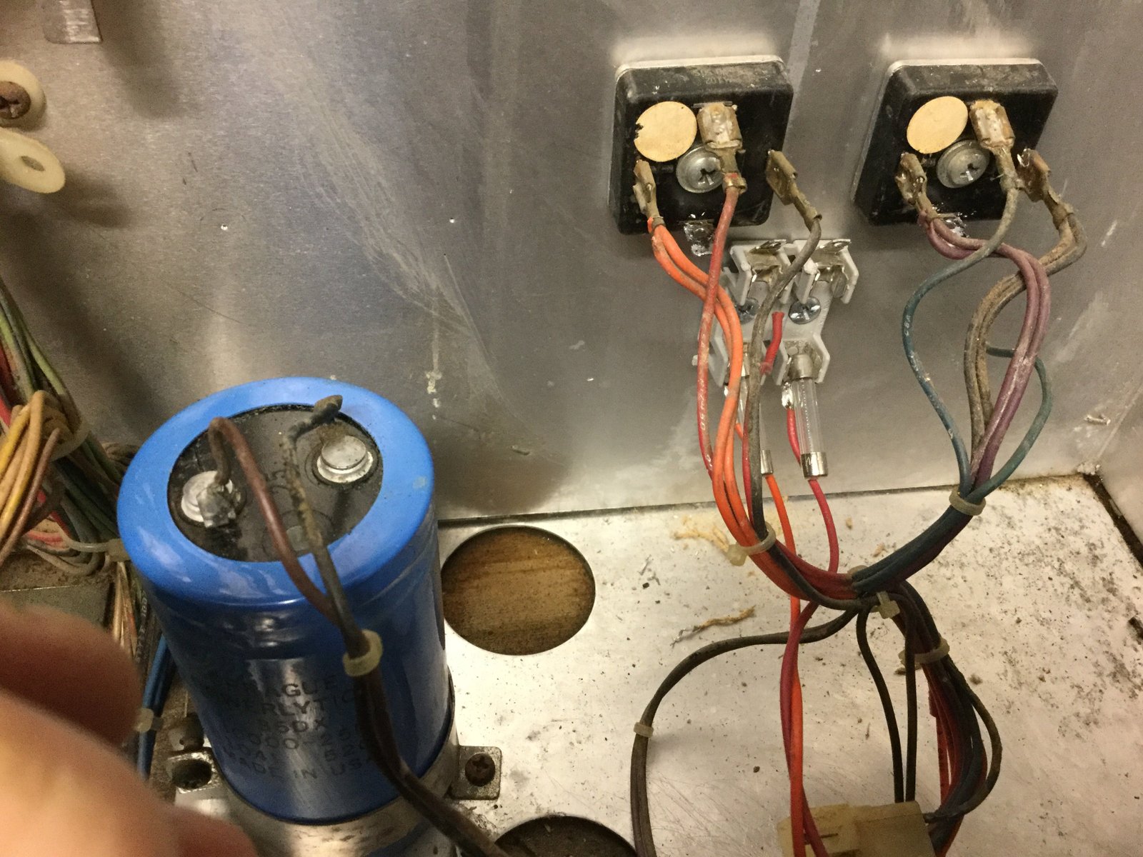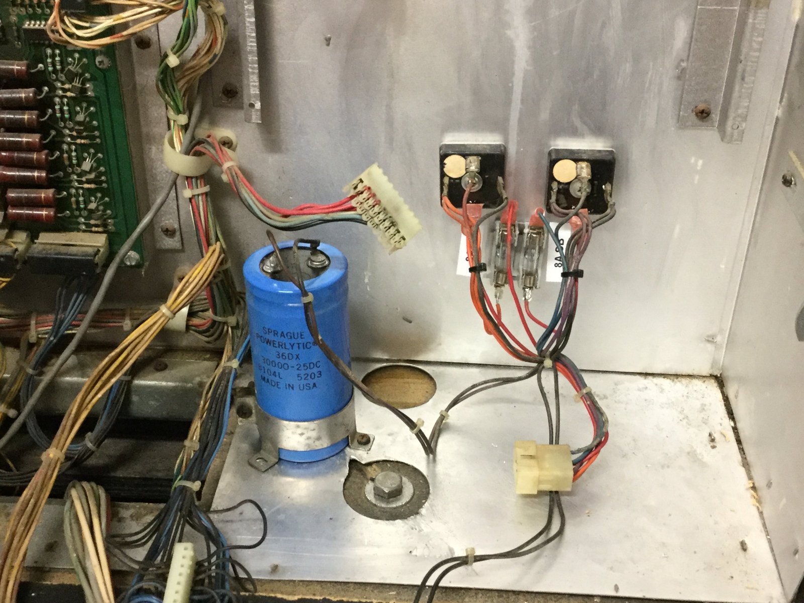 Came back to this project today and finished it up. I cleaned the large cap along with part of the back box. It looks much better now. Here are the steps for adding the fuses: