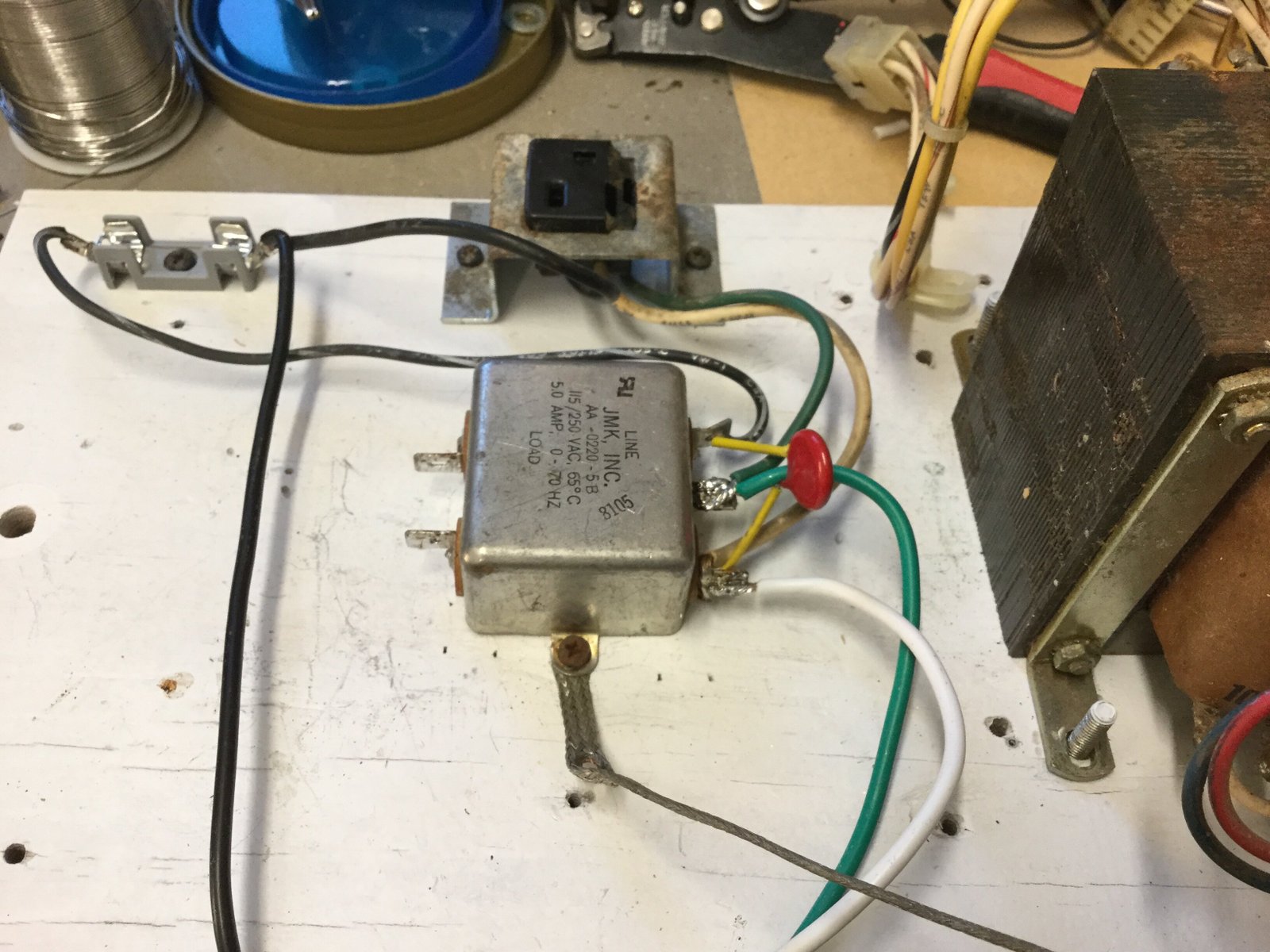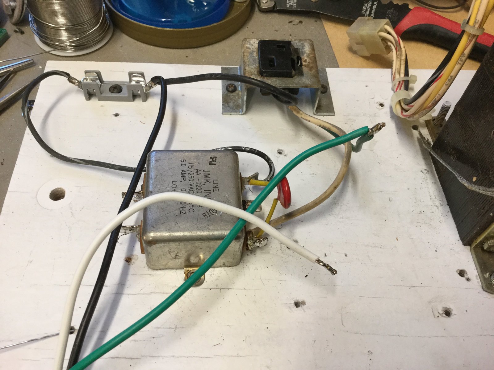 Started to reassemble the power block and added a new fuse holder, fuse, and power cord. I have a drawer full of used and new power cords, and just grabbed one. Need to finish putting everything back together and then will test for voltages. Here are the steps to replacing a power cord: