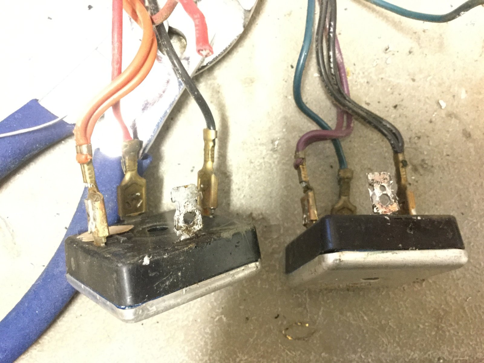 - Remove one of the blue and orange wire from each BR. These are the “AC” on the bridge rectifier and not the “+” or “-“. It doesn’t matter which one you take.