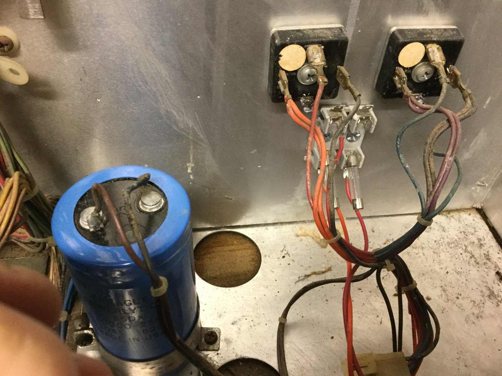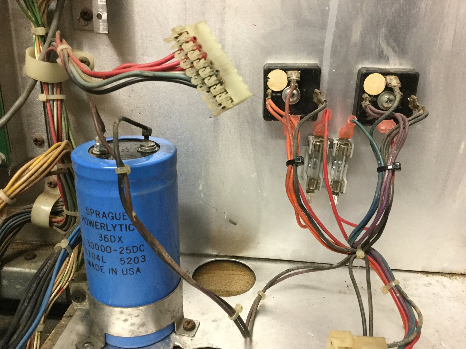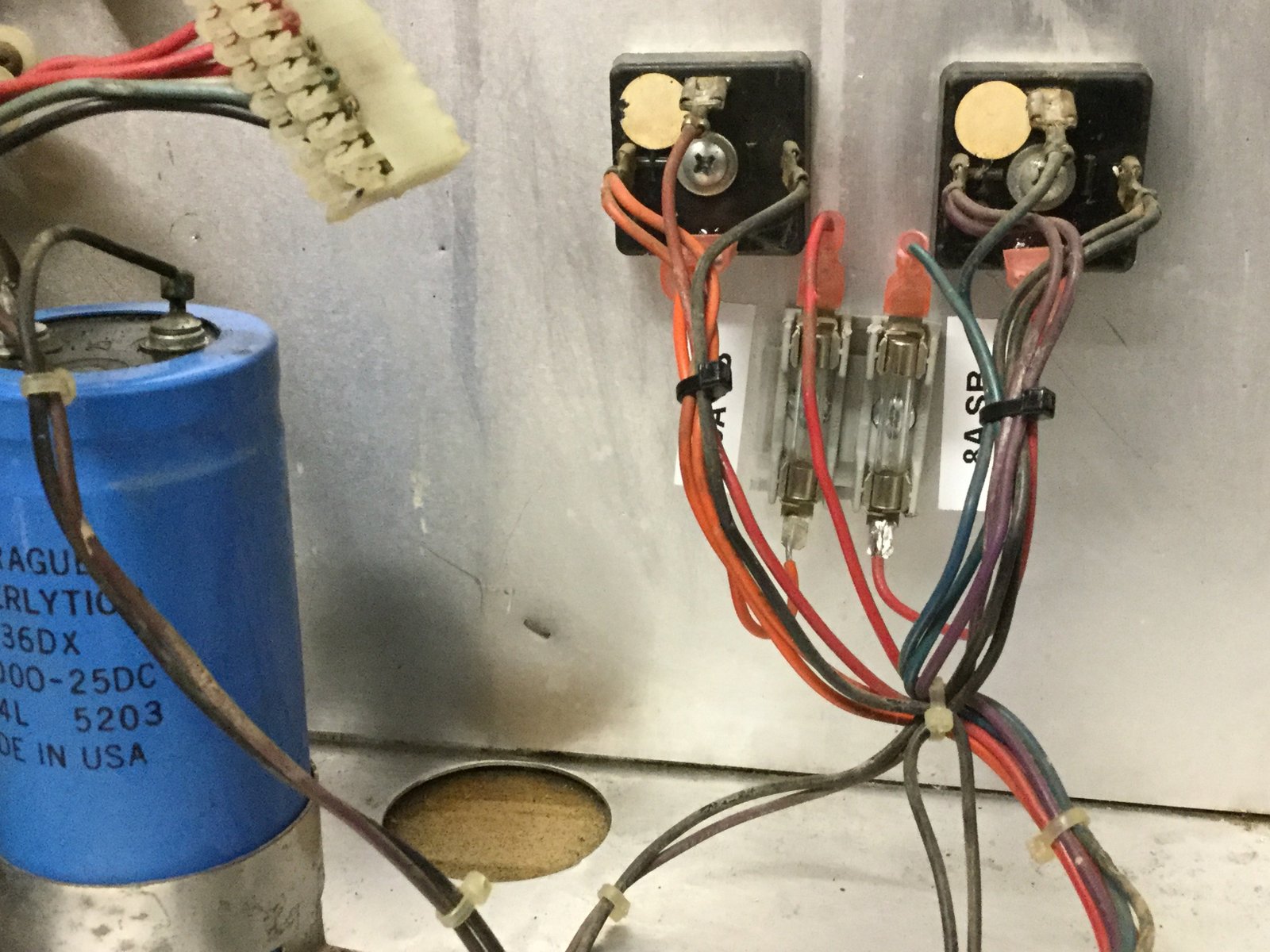Came back to this project today and finished it up. I cleaned the large cap along with part of the back box. It looks much better now. Here are the steps for adding the fuses: