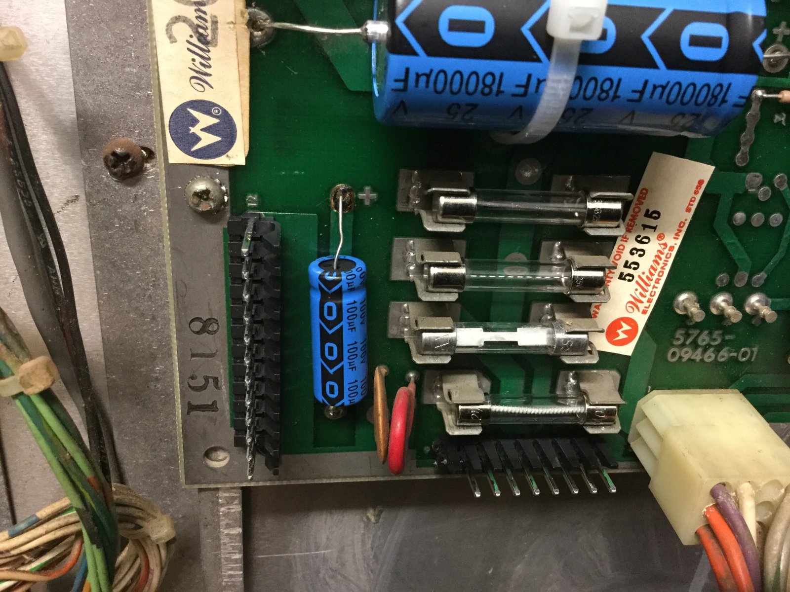 I replaced the power connector pins that connects to the sound board. These were pretty corroded and needed replaced.