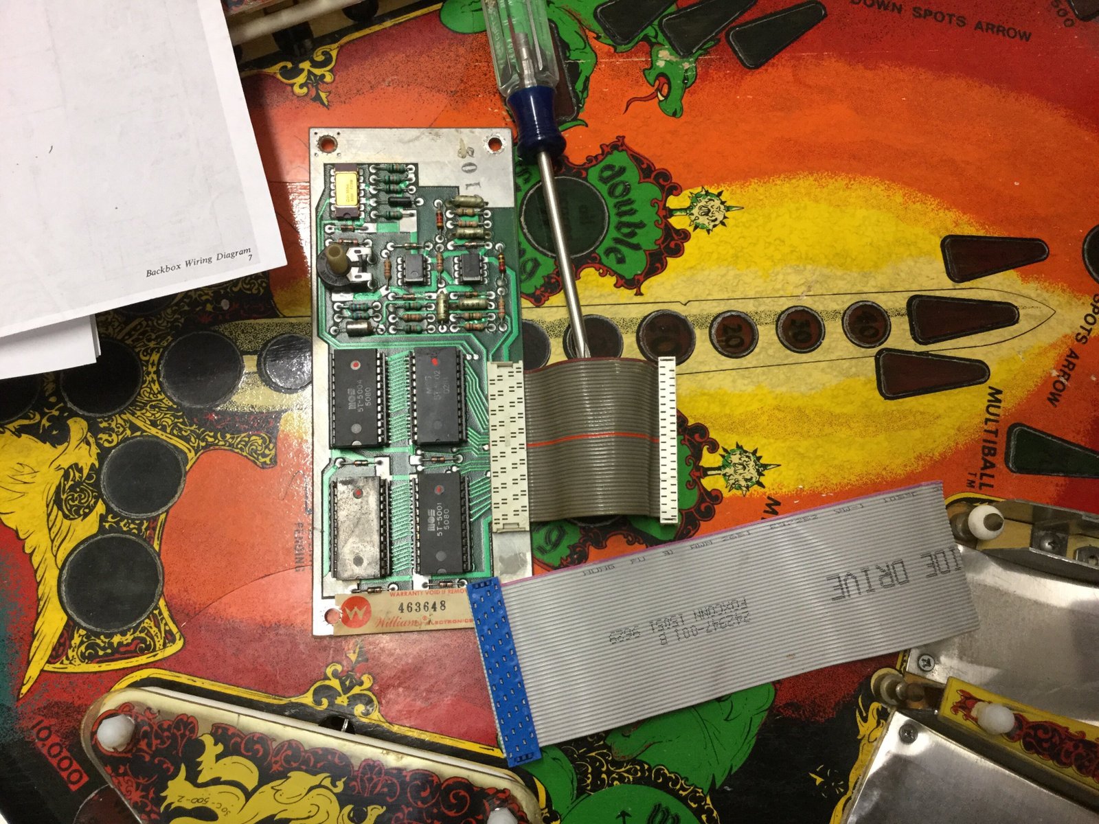 The sounds on Black Knight have been somewhat erratic. The sounds are there, but often it’s very soft and other times normal. I couldn’t adjust the volume for the speech. I tried a couple minor things such as replacing the speaker, resolder the wires to the volume pot, replaced headers and connectors on the sound board and none of those worked.