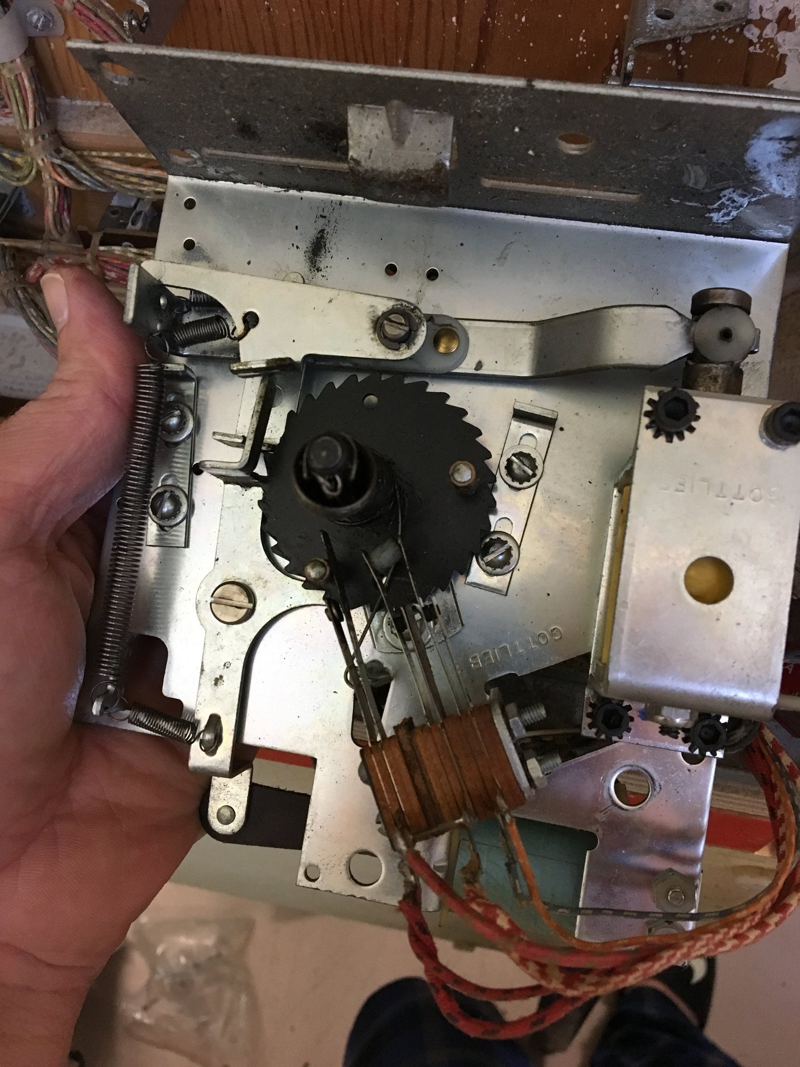 I like to do a few checks when inspecting a game of unknown state. I check the fuses along with the fuse holder. I found one 2A slow-blow fuse that was blown. I replaced it with a circuit breaker. This fuse is connected to the 10-bank drop target reset. I then go through ever coil and move it and see if any are stuck. I went through the whole game and didn’t find any. The last check I do is move all the steppers (including score reels) and see if they are moving freely. All steppers moved freely except the ball stepper and the bonus unit. I went ahead and took apart the ball stepper and cleaned and re-lubed the assembly along with checking and cleaning the contacts switches.