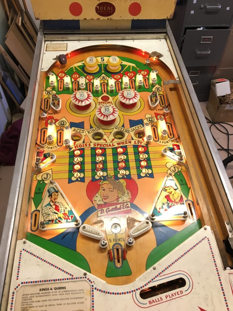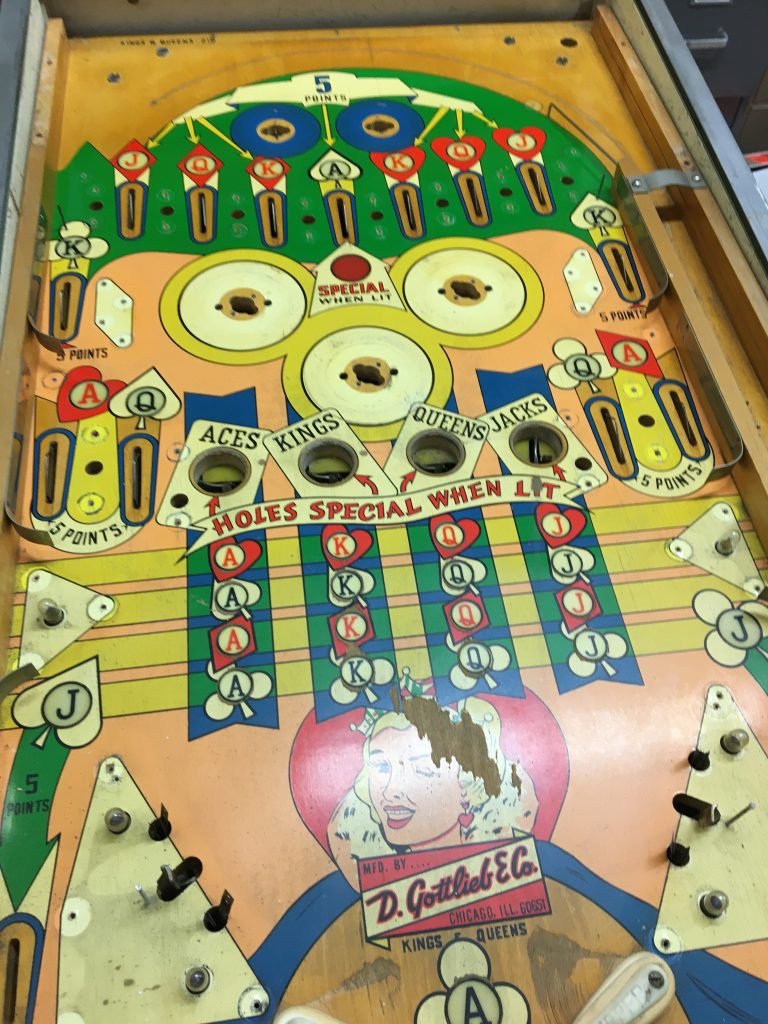 I received a 1965 Gottlieb Kings and Queens pinball game from a friend of mine. My first look at the game was in photos only (see below). I was unsure of the condition, but from looking at the pictures, I assumed it wasn’t going to work.