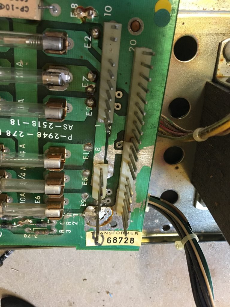 I began the repair by checking fuses on the rectifier board, which were all good. The connectors and header pins had some burnt marks on them. I replaced header pin along with the connectors. The next step was to check the voltages, which all measured correctly. Plugged in the new MPU and game booted up.